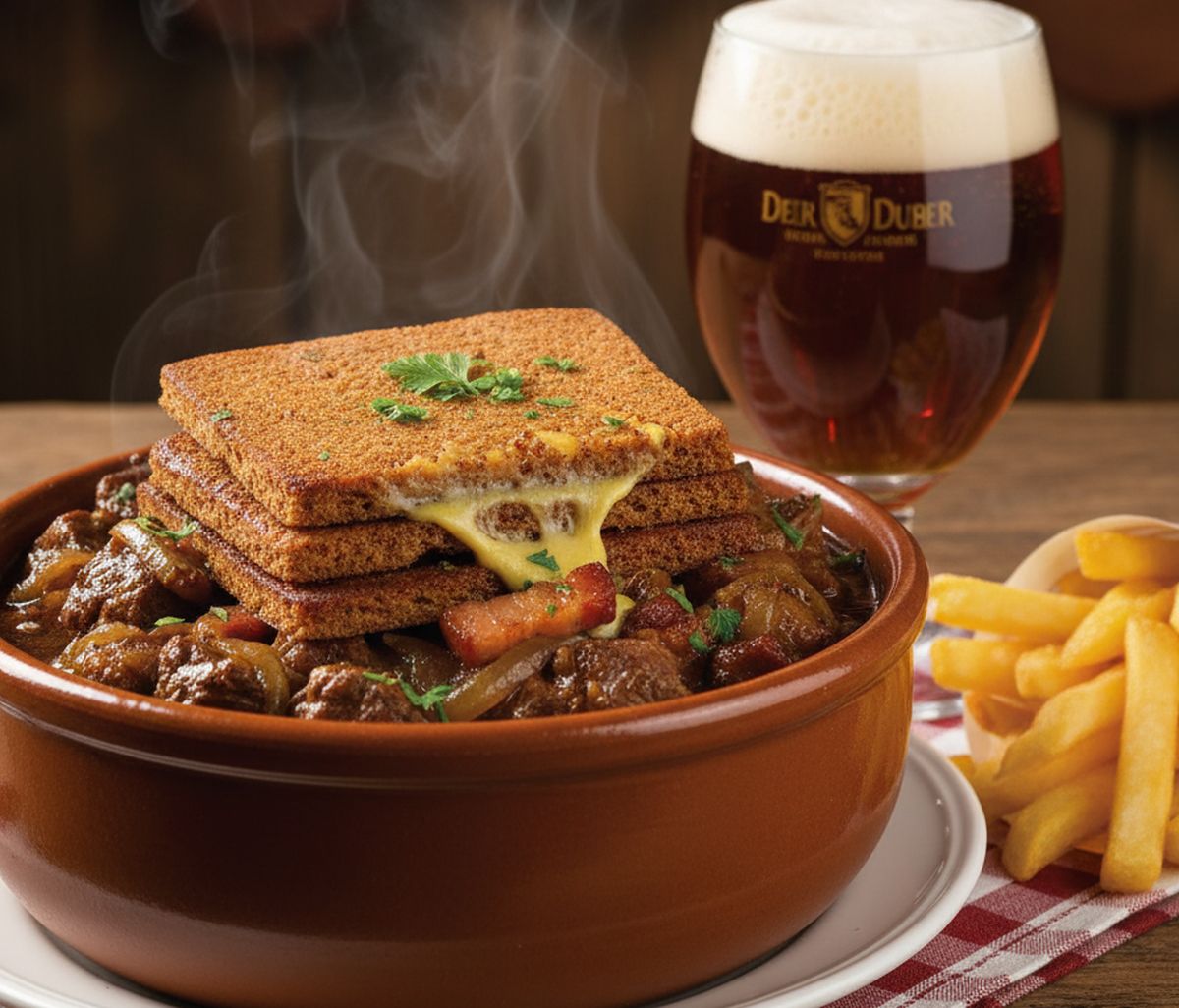 Ce plat tire ses racines des Flandres belges, où les brasseurs abondent depuis des siècles. La bière, ingrédient central, servait autrefois à conserver la viande tout en ajoutant une amertume équilibrée. Les mineurs et ouvriers du Nord consommaient ce ragoût copieux pour affronter les journées froides. Au fil du temps, la recette s’est transmise de génération en génération, intégrant des éléments comme le vinaigre ou la moutarde pour rehausser les saveurs.