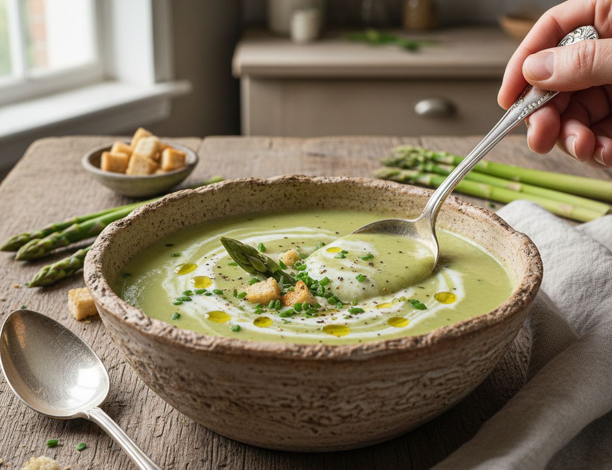 Le velouté d’asperges séduit par sa douceur et sa fraîcheur saisonnière. Cette soupe onctueuse met en valeur les asperges du moment, qu’elles soient vertes ou blanches, pour un résultat léger et parfumé. En une trentaine de minutes, vous obtenez un plat réconfortant qui convient aux déjeuners rapides comme aux dîners plus soignés. Les pommes de terre apportent du corps tandis que la crème finale lisse la texture. Adaptable selon les envies, ce velouté d’asperges reste accessible même pour les débutants en cuisine.